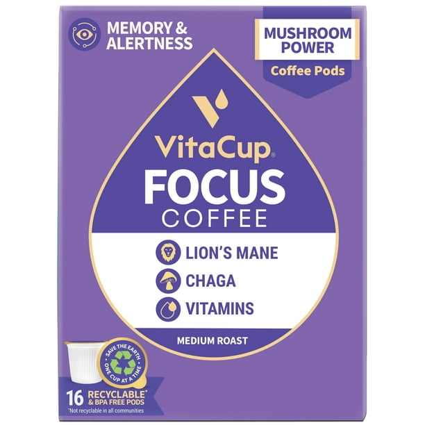 Vitacup Focus Coffee Pods With Lions Mane Chaga Mushrooms B Vitamins Vitamin D3 For Immune Support Focus In Recyclable Single Serve Pod Compatible With K Cup Brewers Including Keurig 2 0 16